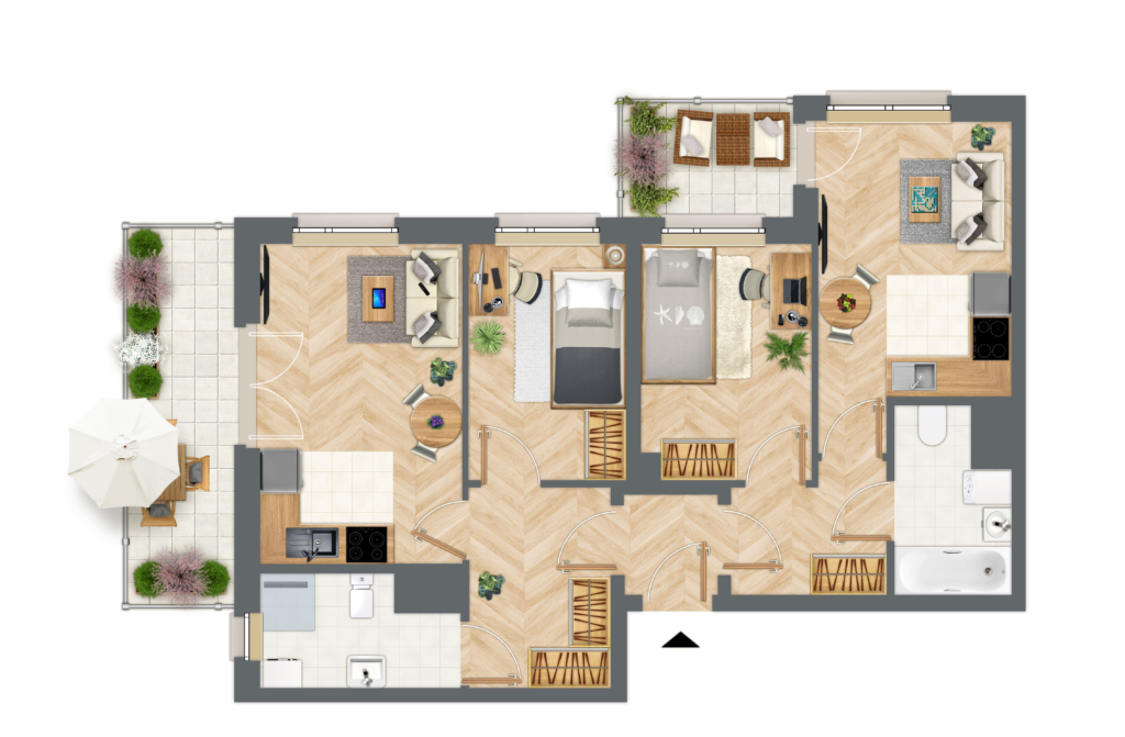 Życie w jednym miejscu z dziadkami, rodzicami i dziećmi staje się coraz bardziej popularne. Mieszkanie podzielone na dwie części daje tę niezwykle potrzebną prywatność każdej generacji, zachowując jednocześnie bliskość rodziny. Starsi członkowie rodziny mogą cieszyć się niezależnością, a młodsze pokolenie ma pewność, że ich bliscy są w zasięgu ręki.