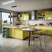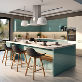 Czasem nie ogranicza nas metraż kuchni, a jedynie brak pomysłu i inspiracji. Przy dużej powierzchni możemy puścić wodzę fantazji i łączyć ze sobą nie tylko kolory, ale również wzory. Niestandardowe układy szafek, półek czy wyspy, w połączeniu z wybraną przez nas paletą barw, naprawdę mogą dać efekt WOW! Dzięki dostępności narzędzi sztucznej inteligencji, możemy z kilku wygenerowanych pomysłów wyciągnąć to, co nam najbardziej odpowiada i ostatecznie stworzyć swój własny unikalny projekt.